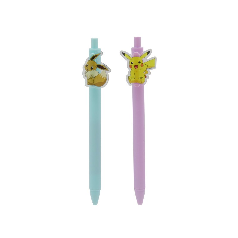 Cet ensemble de 2 stylos Pokemon est parfait pour les fans du célèbre jeu de Nintendo. Chaque stylo est doté d'un clip décoratif des personnages adorables Pikachu et Eevee, ajoutant une touche amusante et colorée à votre papeterie. Les stylos sont de teintes pastel, l'un bleu clair et l'autre lilas, mettant encore plus en valeur les détails des personnages.