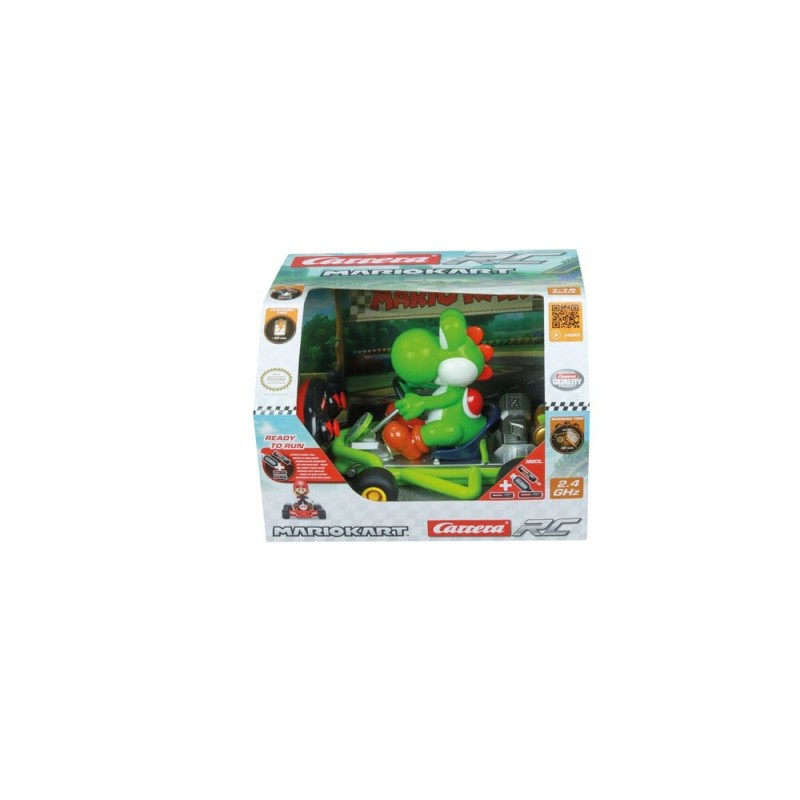 Découvrez la voiture télécommandée Super Mario Kart à l'échelle 1:18 avec Yoshi, capturant l'essence du célèbre jeu vidéo. Conçu avec soin, cette voiture présente Yoshi dans son emblématique Pipe Kart, prêt à courir. Fabriquée avec des matériaux de haute qualité, la voiture inclut un système de télécommande de 2,4 GHz permettant une conduite précise et amusante. Officiellement licenciée par Carrera, elle se distingue non seulement par sa qualité mais aussi par son design fidèle au jeu original. Parfaite pour les enfants et les adultes, c'est un cadeau idéal pour les fans de Super Mario.