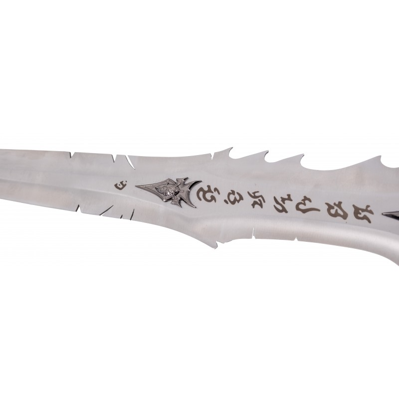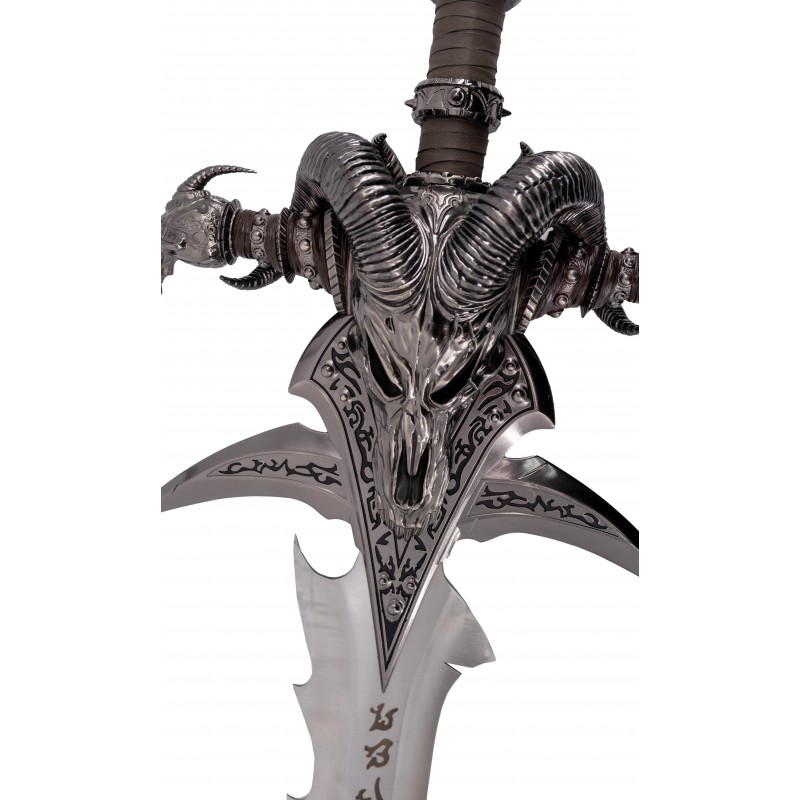L'Épée Frostmourne d'Arthas Roi-Liche est une pièce exquise pour les fans de Warcraft. Avec une taille impressionnante de 124 cm, cette réplique captive par sa lame en acier époustouflante ornée de gravures runiques complexes. Le design détaillé comprend un pommeau en forme de crâne et des poignées ornées, évoquant la puissante présence du Roi-Liche.