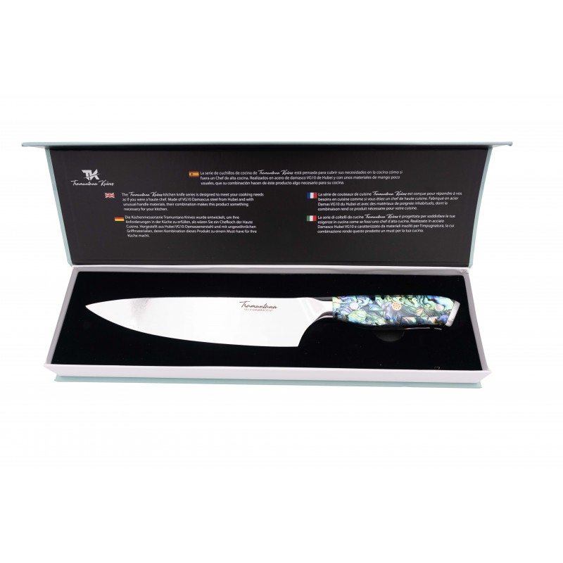 Découvrez l'élégance et la précision de la coupe japonaise avec cet impressionnant couteau de chef Gyuto de 20,6 cm, fabriqué en acier Damas VG-10 67 plis. Un must pour les chefs et les amateurs de cuisine exigeants qui recherchent la performance, la durabilité et un design qui ne passera pas inaperçu.