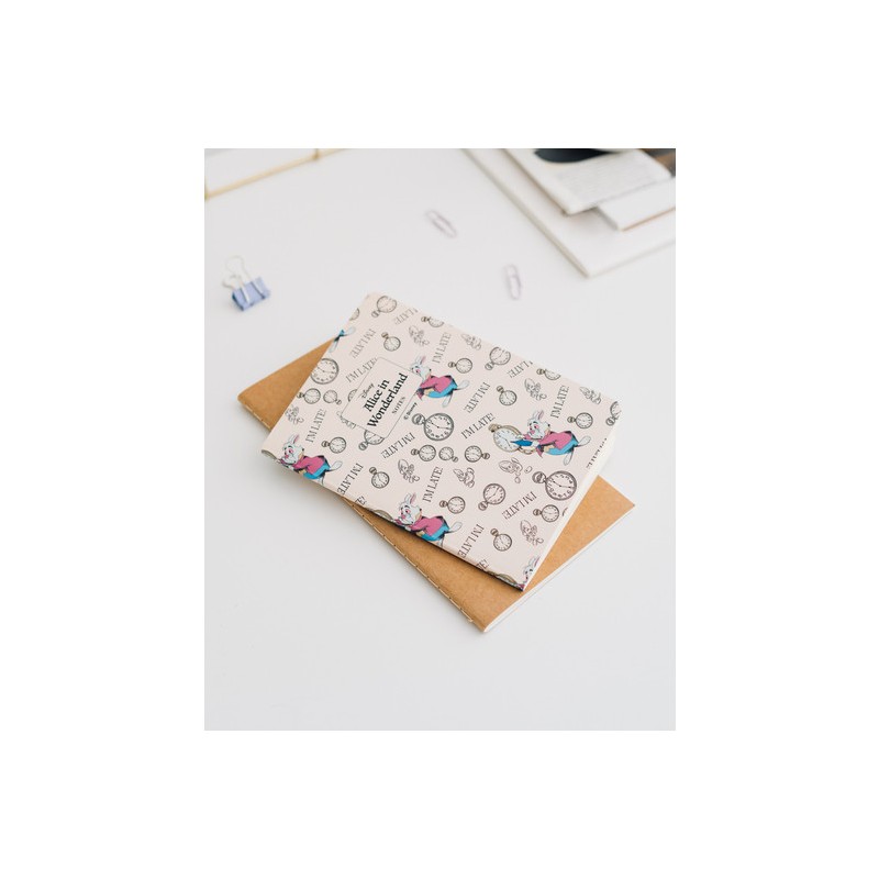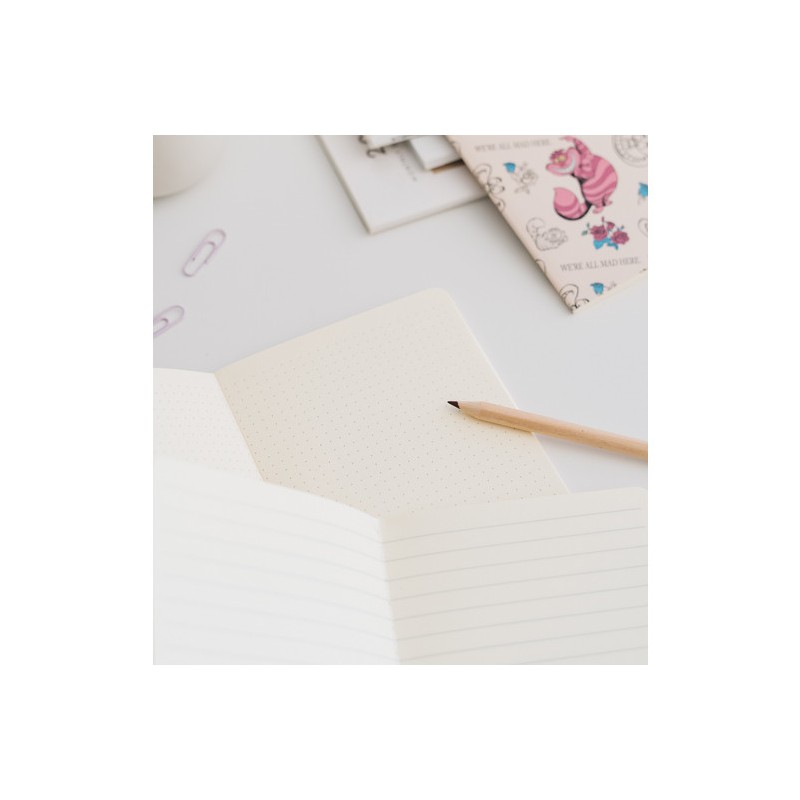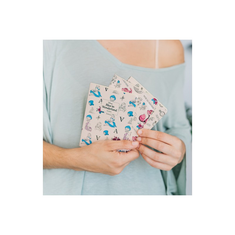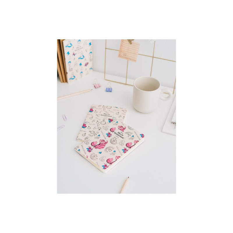 Ce charmant lot de 3 carnets A6 sous licence officielle Disney vous transporte dans le monde magique d'Alice au Pays des Merveilles. Chaque carnet présente un design unique inspiré du classique Disney, avec des personnages emblématiques comme le Chat de Cheshire et Alice elle-même, sur des fonds qui évoquent le style du conte.