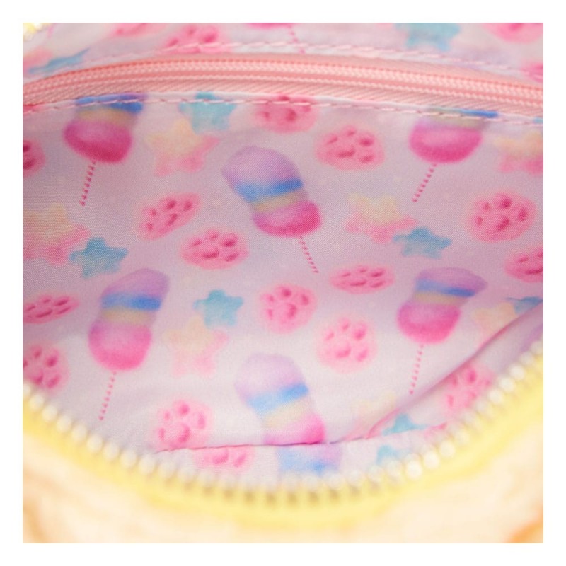 L'intérieur est doublé d'un charmant imprimé de bonbons en coton et d'étoiles, ajoutant une touche ludique et colorée. La sangle ajustable permet un port confortable à l'épaule ou en travers, s'adaptant à votre style et à vos besoins quotidiens.