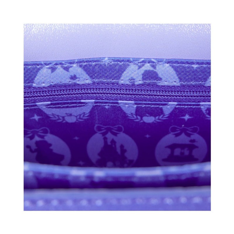 Découvrez le sac bandoulière Disney Princess Blanche-Neige par Loungefly, une pièce qui allie élégance et charme. Ce sac, fabriqué en cuir PU de haute qualité, présente un design en tons lilas orné de broderies florales délicates et de détails emblématiques de Blanche-Neige. La poignée supérieure en métal en forme de pomme ajoute une touche unique et distinctive.