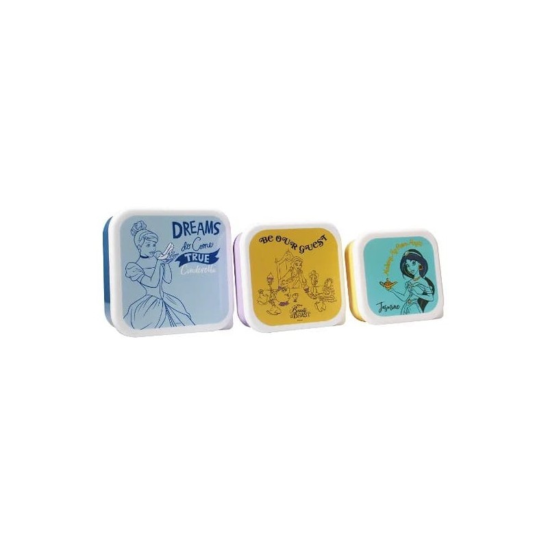 Cet adorable ensemble de 3 boîtes à snack de Disney est l'ajout parfait pour tout fan des princesses. Chaque boîte présente un design unique avec les images de Cendrillon, Belle et Jasmine, capturant l'essence magique de Disney. Les couvercles sont décorés de couleurs vives bleu, jaune et turquoise, avec des phrases inspirantes. Fabriquées par Half Moon Bay, ces boîtes sont parfaites pour garder vos snacks frais tout en ajoutant une touche de charme à votre cuisine. Produit officiellement licencié, idéal pour des cadeaux originaux ou pour se faire plaisir.