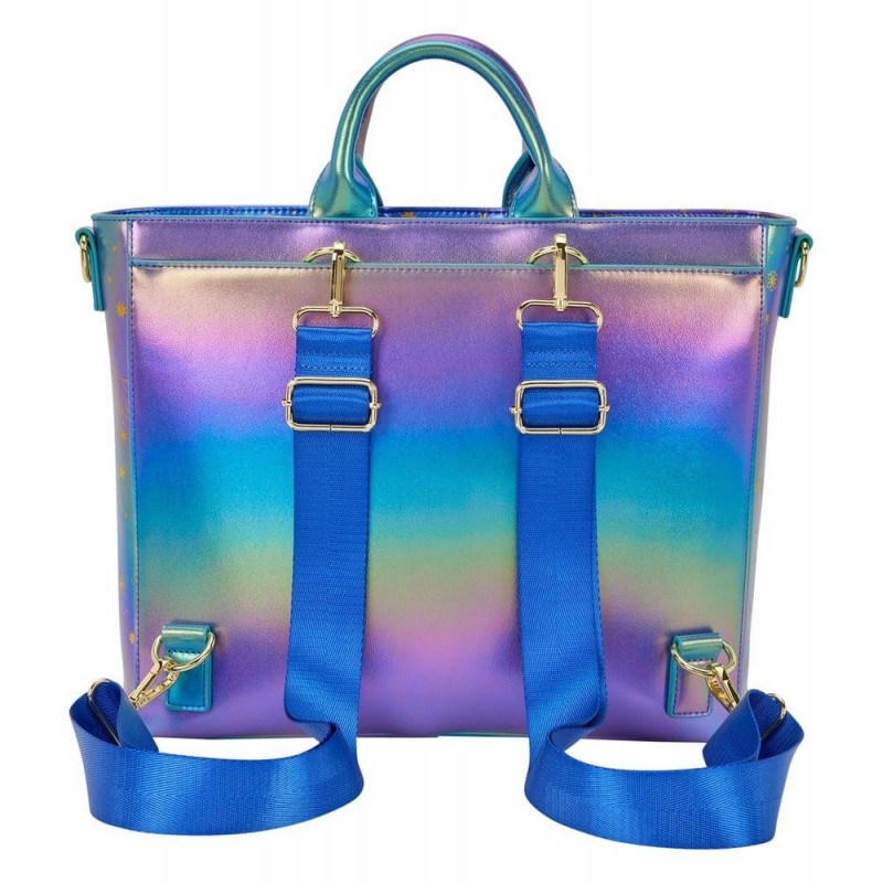 Découvrez le Mochila et Sac Convertible Disney by Loungefly, un accessoire élégant rempli de magie. Avec un design vibrant qui fusionne des tons bleus, violets et dorés, cette pièce est idéale pour les fans de Disney. La partie avant est ornée d'une broderie dorée détaillée du personnage emblématique de Disney. Fabriqué avec des matériaux de haute qualité, tels que le polyester et le cuir PU, il garantit durabilité et résistance.