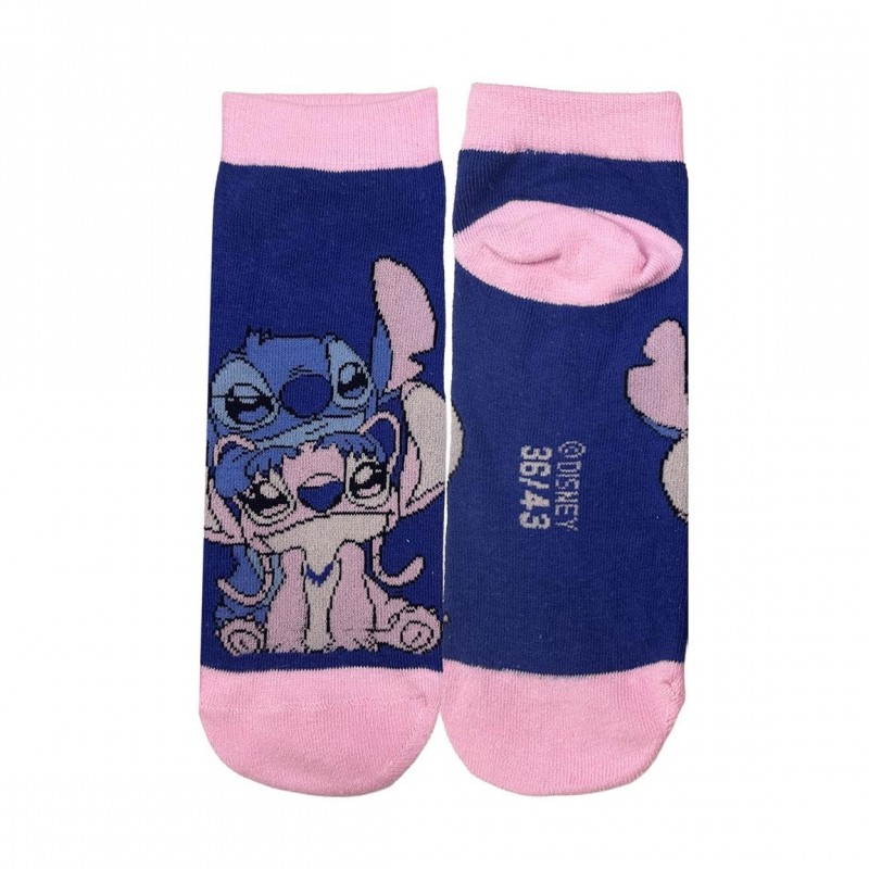 Le design coloré présente Stitch dans plusieurs postures, avec une palette de tons bleus et roses qui ajoute une touche joyeuse à n'importe quelle tenue. Ces chaussettes sont sans taille particulière, les rendant idéales pour différentes tailles de pieds, s'adaptant confortablement entre les tailles 36 et 43.