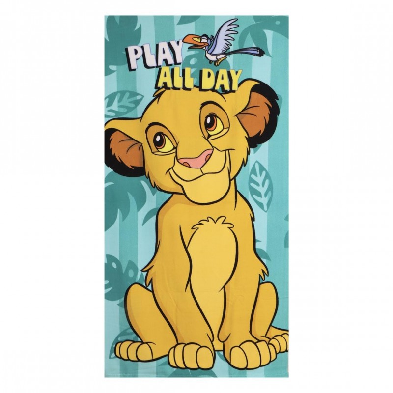 Plongez dans la magie de la savane africaine avec cette charmante serviette en microfibre Le Roi Lion. Parfaite pour les fans de tous âges, cette serviette présente Simba avec une expression enjouée, accompagnée de la phrase 'Play All Day'.