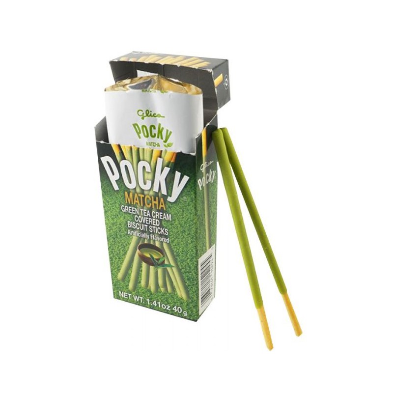 Sont quelques-uns des bâtons ou des bâtons de blé couvert dans une crème de thé vert matcha, et quand vous l'essayez, vous verrez qu'ils ont un goût délicieux et avec une touche spéciale, différente de ce que nous sommes habitués ici.