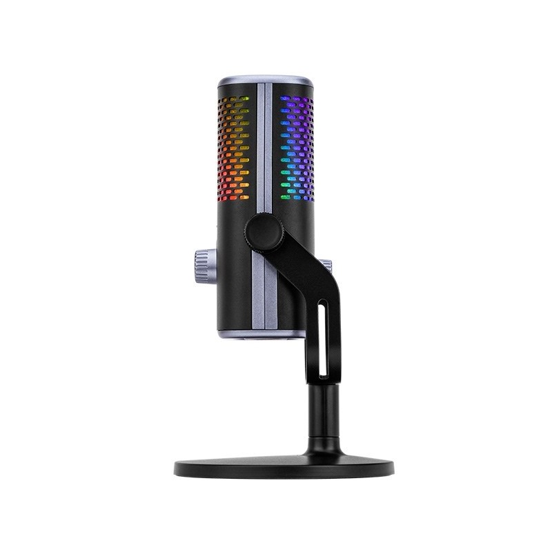 Ce microphone se distingue par sa fonctionnalité avec une sortie casque permettant une surveillance sans latence et un support anti-vibration qui minimise les bruits indésirables. Compact et stable, il est parfait pour les petits bureaux sans sacrifier la performance. Inclut un support de bureau, faisant du GS50 RGB une option polyvalente et complète pour tout utilisateur.