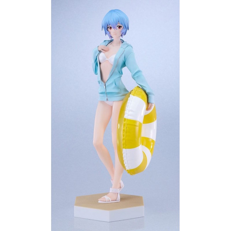 Découvrez la statue de Rei Ayanami de la série Rebuild of Evangelion, une pièce incontournable pour tout collectionneur. Fabriquée par Good Smile Company, cette figure de 22 cm capture parfaitement l'essence du personnage iconique de l'anime. Réalisée en PVC de haute qualité, elle présente Rei en tenue de plage, avec une veste bleue claire ouverte et une bouée jaune et blanche, mettant en valeur ses cheveux bleus et son regard caractéristique.