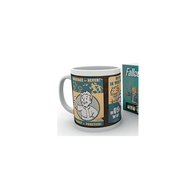 Une coupe officielle du jeu vidéo Fallout dans son quatrième opus. Autour de la tasse a plusieurs affiches de l'aspect vintage, comme photogénique Vault Boy qui est si élégant marchandise que nous partons.