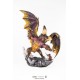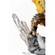 Le niveau de détail de cette statue est impressionnant, des imposantes ailes multicolores aux nuances de violet, de jaune et de brun, jusqu'aux épines et aux écailles qui ornent de façon réaliste son corps redoutable. À la base, les figurines du chasseur et de Palico recréent le frisson d'une bataille épique, mettant en valeur les combats emblématiques du jeu.