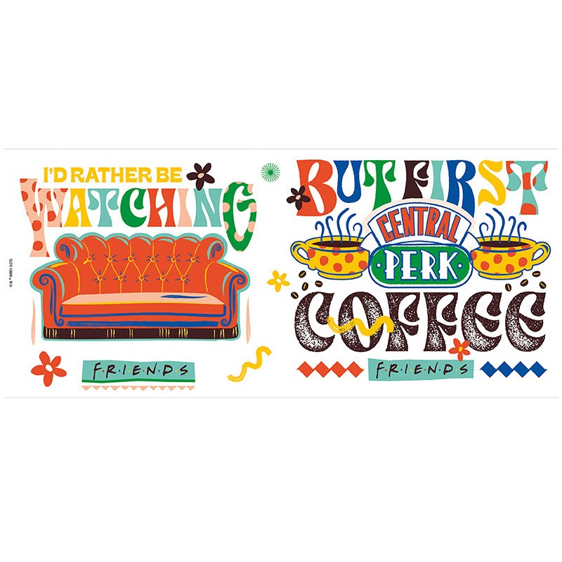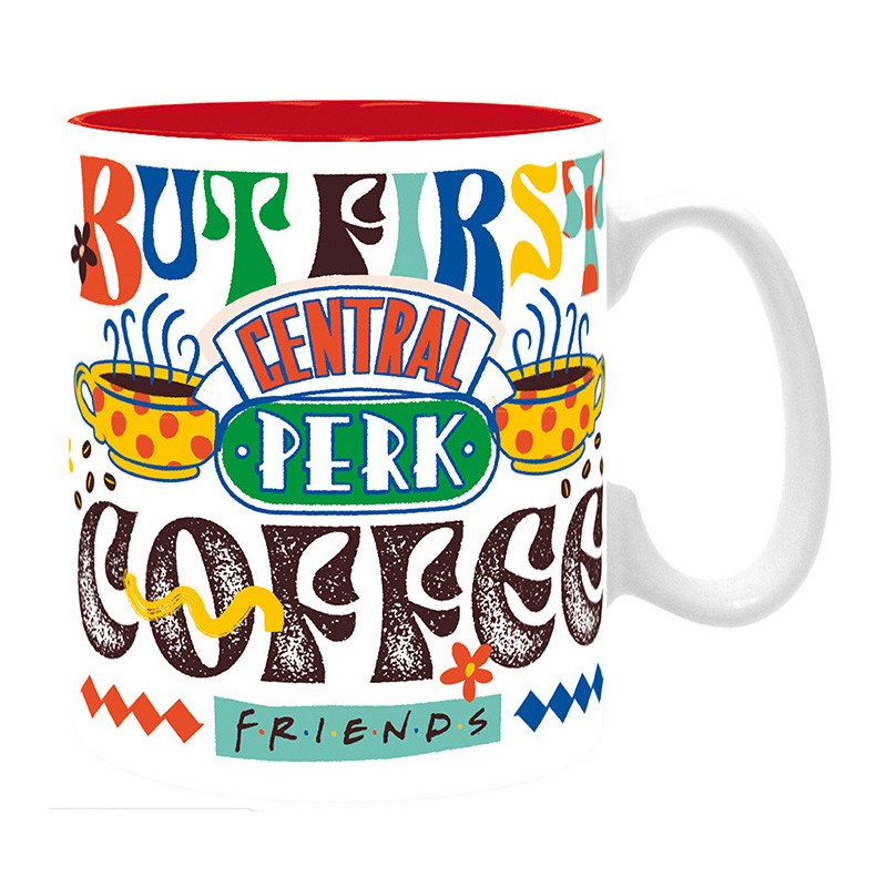 Découvrez le mug de 460 ml de Friends inspiré par le célèbre café Central Perk. Ce mug arbore un design vibrant avec le logo Central Perk au centre, entouré de graphiques originaux aux couleurs vives qui évoquent l'ambiance du café classique. L'intérieur rouge ajoute une touche d'énergie et de contraste au design. Parfait pour les amateurs de Friends, c'est un produit sous licence officielle, idéal pour commencer la journée avec style ou pour ajouter à votre collection d'objets culte. Un cadeau fantastique pour tout fan de la série.