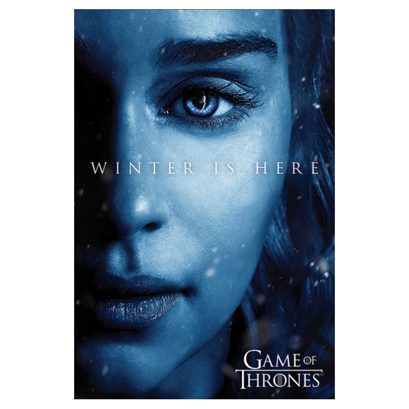 C'est une grande affiche, très élégant, la conception de ce qui est dominée par l' détaillée visage dans le milieu des ombres de la grande Daenerys, la mère des dragons et le principal représentant de la Maison Targaryen, le long avec la phrase, l'Hiver est Là. Dans le peu que nous voyons en outre le célèbre logo officiel de cette fantastique série dans sa version originale anglaise, Game of Thrones. Vous laissera bouche bée à chaque fidèle de la série.