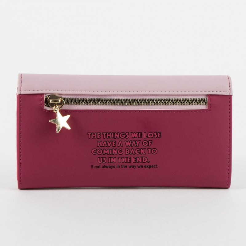 Fabriqué à 100% en PU, ce porte-monnaie offre durabilité et style. Au dos, il présente une fermeture éclair dorée ornée d'un charmante étoile ainsi que la célèbre citation de Luna : "The things we lose have a way of coming back to us in the end." Son intérieur spacieux est conçu pour organiser vos cartes, billets et pièces avec aisance.