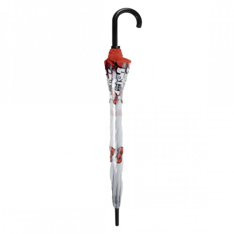 Le parapluie manuel POE Hello Kitty est l'accessoire idéal pour les jours de pluie. Avec un design transparent orné des nœuds rouges emblématiques et de l'image de Hello Kitty, ce parapluie est à la fois fonctionnel et charmant. Son diamètre de 60 cm offre une couverture généreuse, tandis que la structure en fibre de verre haute résistance garantit une durabilité et une résistance au vent. Fabriqué en 100 % POE, il est léger et facile à manipuler. De plus, sa poignée en forme de J offre une prise en main confortable et sécurisée.