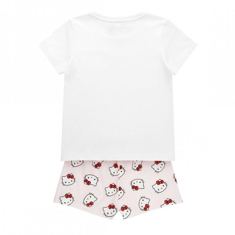 Ce charmant ensemble de pyjama court Hello Kitty est conçu pour offrir confort et style aux jeunes fans de 6 à 12 ans. Fabriqué en 100% coton, il garantit douceur et fraîcheur pendant les nuits d'été. Le set comprend un t-shirt blanc avec un imprimé coloré de Hello Kitty et de ses amis, et un short rose clair orné du nœud rouge signature de Kitty.