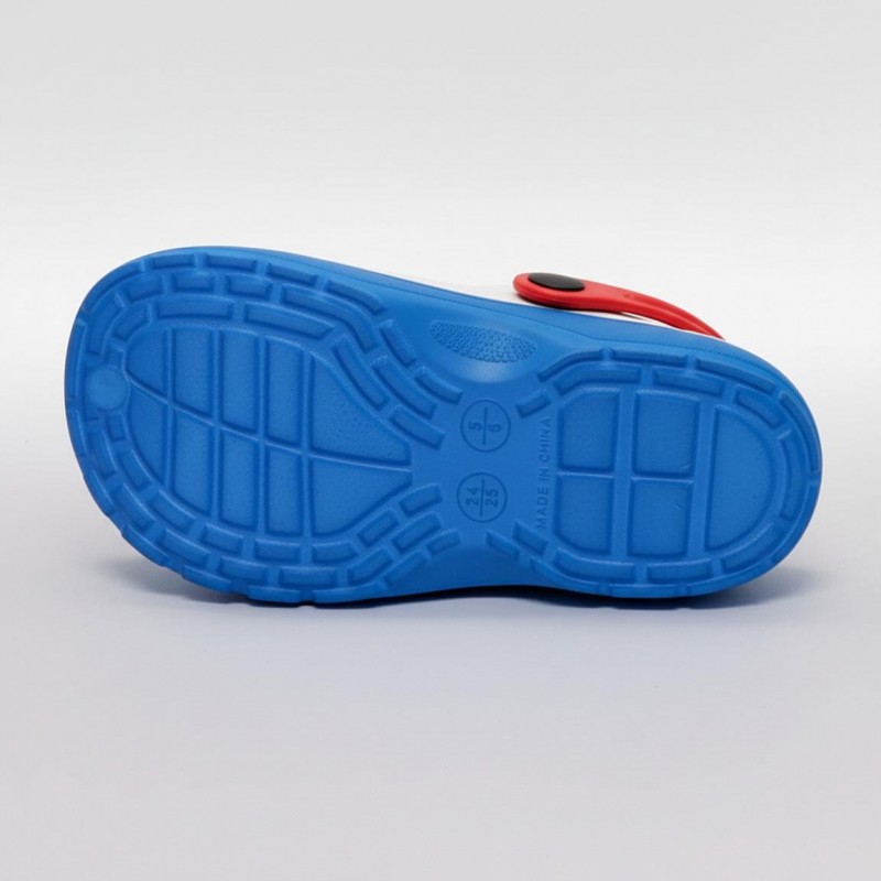 Fabriqués entièrement en EVA, ces sabots offrent un confort exceptionnel et une légèreté parfaite pour un usage quotidien. Leur semelle bleue antidérapante garantit la sécurité des enfants sur les surfaces glissantes, tandis que la sangle rouge ajustable assure un ajustement parfait et sécurisé.