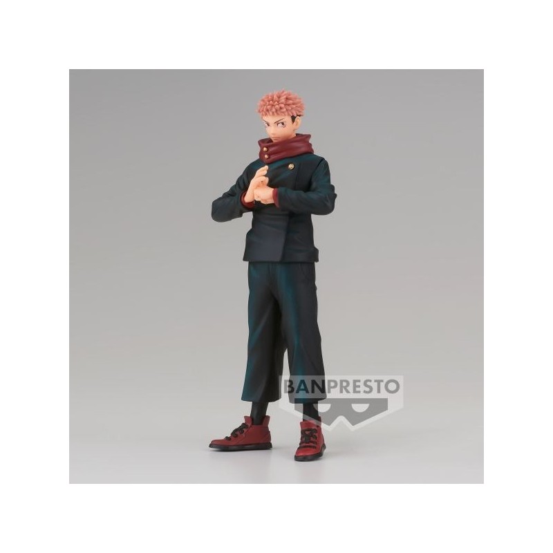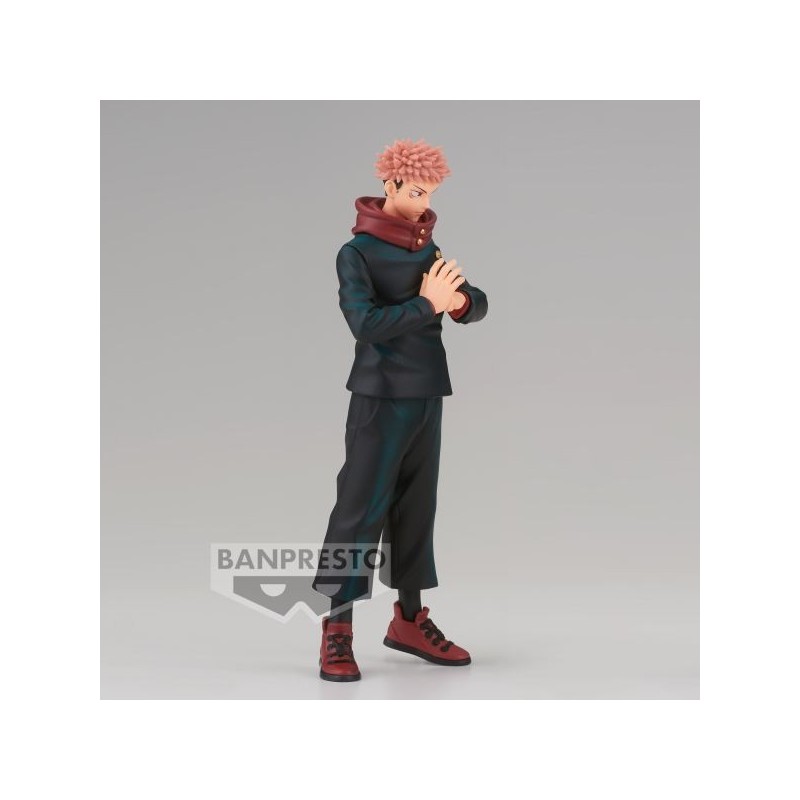 Découvrez la figurine de Yuji Itadori, incontournable pour les fans de l'anime Jujutsu Kaisen. Produite par Banpresto, cette figurine fait partie de la collection Jukon No Kata et est soigneusement fabriquée en PVC de haute qualité, mesurant 16 cm de haut. Yuji Itadori est représenté dans sa tenue sombre classique, accentuée par des détails rouge bordeaux, mettant en avant son expression déterminée et sa pose dynamique.