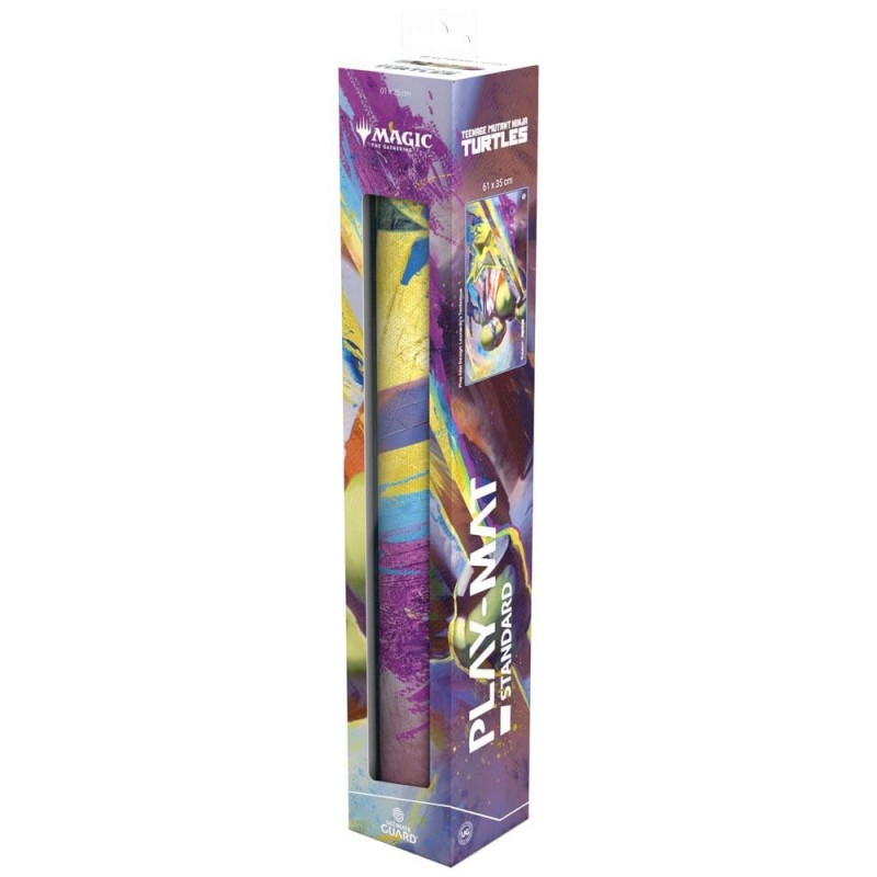 Découvrez le Play-Mat Standard d'Ultimate Guard, un bijou pour les fans de Magic: The Gathering et des Teenage Mutant Ninja Turtles. Ce tapis de jeu, mesurant 61 x 35 cm, présente une illustration vibrante et pleine d'action de Leonardo, le célèbre guerrier tortue. Fabriqué en caoutchouc naturel, il offre un rembourrage doux de 2 mm qui protège vos cartes et accessoires des rayures et de la saleté.