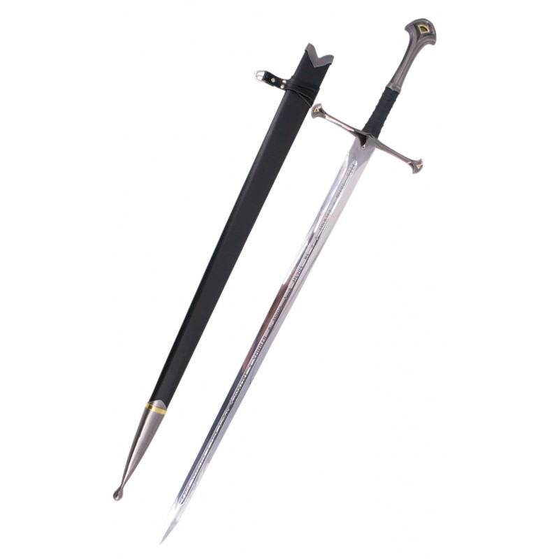 Elle porte sur son tranchant et sa garde les runes elfiques qui la rendent unique et est accompagnée d'un fourreau en imitation de vieux cuir et d'acier, d'une qualité exceptionnelle en termes de matériaux et de finitions. Il s'agit de la réplique non officielle la plus proche de celle utilisée dans les films.