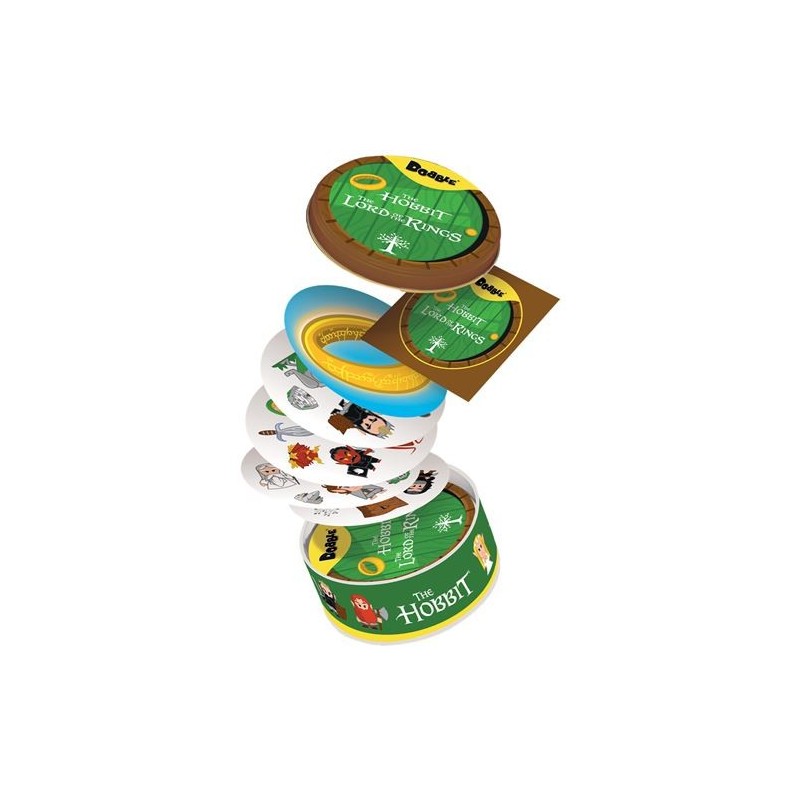 Le jeu de société Dobble Le Seigneur des Anneaux vous plonge dans l'univers magique de Tolkien, alliant vitesse et observation. Inspiré par Le Seigneur des Anneaux et Le Hobbit, les joueurs doivent trouver le symbole identique entre deux cartes, en rivalisant de réflexes et de rapidité mentale.