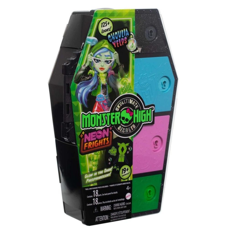 La Poupée Monster High Skulltimate Secrets Neon Frights vous plonge dans un monde fluorescent rempli de surprises. Cette édition spéciale inclut Ghoulia Yelps avec ses cheveux et son maquillage saisissants aux couleurs néon, ainsi que plus de 19 accessoires qui stimulent l'imagination. Éteignez les lumières et découvrez les trois accessoires phosphorescents, parfaits pour éclairer vos aventures nocturnes.