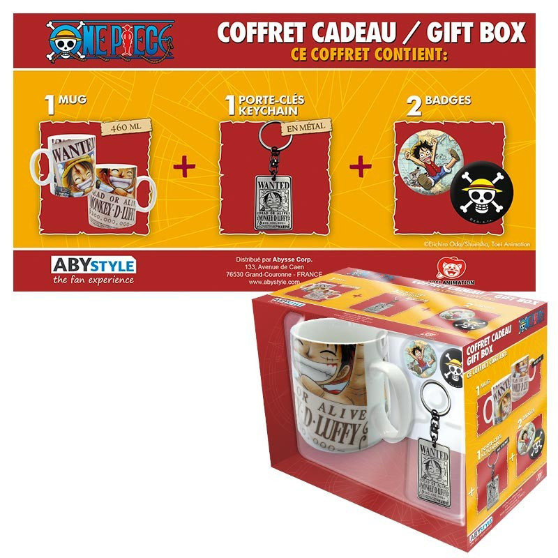Un ensemble de cadeau officier très bien pensé, qui rend hommage à l'un de la série de manga qui a marqué l'adolescence de toute une génération, le légendaire One Piece. Un savant pack de cadeau dans lequel vous pouvez trouver une grande tasse, porte-clés et des badges.