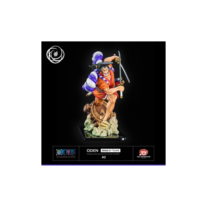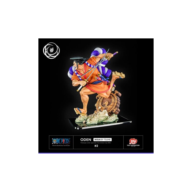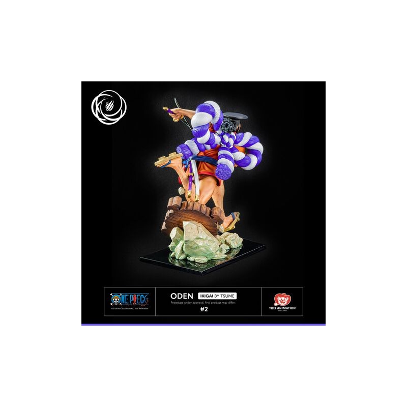 Découvrez la puissance et la majesté avec la statue d'Oden de la collection Ikigai, inspirée du manga et de l'anime légendaires One Piece. Cette figurine en résine à l'échelle 1/6 mesure 44,5x36x22,5 cm et possède une base d'exposition spéciale, idéale pour tout collectionneur. Le design capture Oden dans sa pose de combat emblématique, brandissant ses épées légendaires : Ame no Habakiri et Enma. Des détails méticuleux et une finition de haute qualité présentent le daimyo à son meilleur, infusé d'énergie et de détermination. Surlignant l'emblématique oiseau de la famille Kozuki gravé sur la base noire. Fabriqué par Tsume Arts, ce produit sous licence officielle est parfait pour les fans de l'univers One Piece à la recherche d'une pièce unique et exclusive.