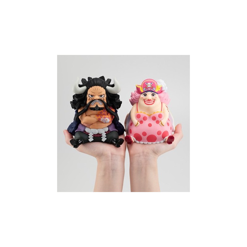 Découvrez le set de figurines Megahouse de Kaido et Big Mom, deux personnages emblématiques de l'anime populaire One Piece. Ces figurines de collection capturent l'essence des personnages avec un grand souci du détail. Kaido, avec ses cornes distinctives et son expression féroce, porte une tenue qui met en avant sa présence imposante. À ses côtés, Big Mom arbore une robe à pois rose colorée et un grand sourire, complétés par un chapeau orné.