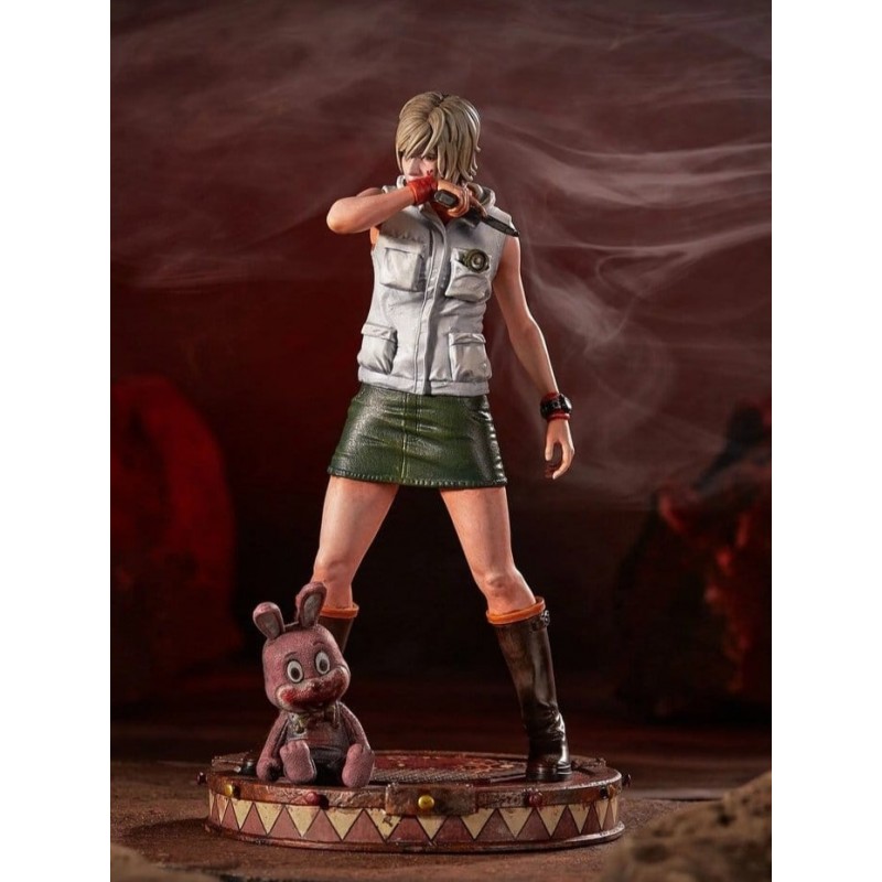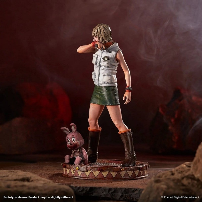 Découvrez la statue PVC de Heather Mason, inspirée du jeu emblématique Silent Hill. Cette figurine détaillée de 18 cm capture Heather dans une pose caractéristique, portant sa tenue classique : une veste blanche sans manches et une jupe verte, complétée par de hautes bottes. La sculpture est finement réalisée, incluant le célèbre lapin Robbie comme touche spéciale sur sa base décorée. Fabriquée par Numskull, cette pièce est un article de collection sous licence officielle, parfait pour les fans du jeu qui souhaitent ajouter une touche de mystère à leur collection.