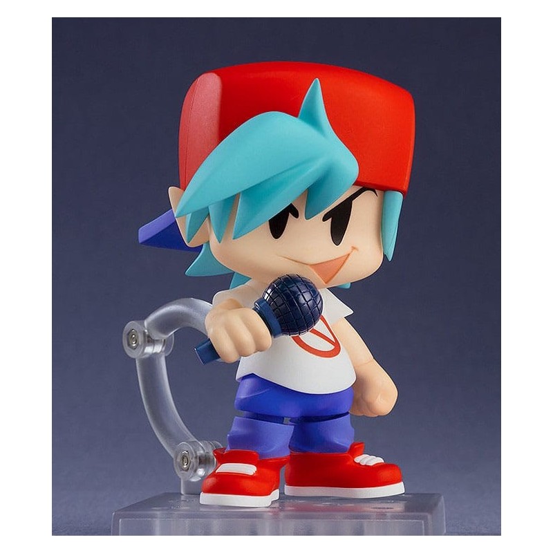 Découvrez la figurine Nendoroid Boyfriend inspirée du jeu populaire Friday Night Funkin'. Cette figurine articulée, fabriquée par Good Smile Company, séduit par son design détaillé de 10 cm de hauteur. Avec sa casquette rouge caractéristique et ses cheveux bleus, Boyfriend est prêt avec son microphone pour une bataille de rap. Livrée avec des accessoires tels que des flèches pour recréer votre propre scène de jeu.