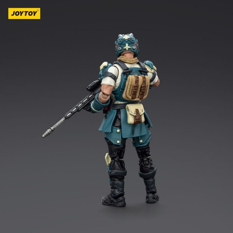 Découvrez l'impressionnante Figure Sniper Foster UNSC Dark Source mesurant 7 cm, conçue avec soin par Joy Toy. Cette figurine d'action présente un soldat détaillé avec une armure high-tech dans des tons bleus et beiges. Elle comprend une variété d'accessoires réalistes, tels qu'un fusil de sniper, un pistolet, un couteau, et d'autres équipements tactiques, augmentant sa valeur de jeu et de collection.