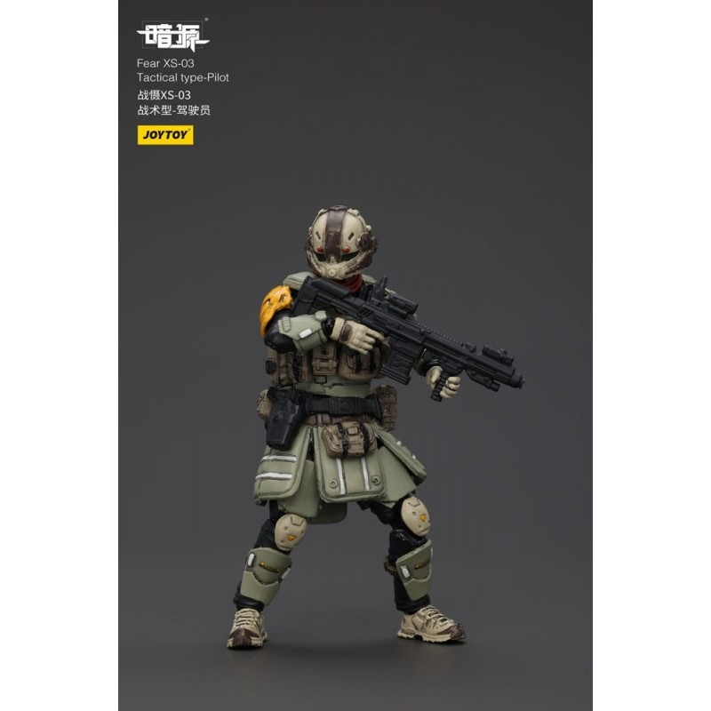 Découvrez la figurine articulée Fear XS-03 Tactical type-Pilot de 12 cm, inspirée du jeu de stratégie passionnant "Battle For the Stars". Cette figurine, fabriquée par Joy Toy, se distingue par son design détaillé et précis, capturant l'essence tactique de l'univers du jeu. Équipée d'une armure tactique vert olive et de détails noirs, cette figurine comprend un casque protecteur, des bottes robustes et divers équipements tactiques.