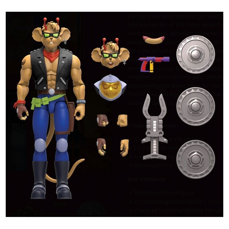Plongez dans la série nostalgique des Motards de l'Espace avec cette impressionnante figurine de Throttle. Ce personnage emblématique, connu pour son courage et son style, est présenté dans une taille détaillée de 18 cm environ. Fabriquée par Nacelle Consumer Products, cette figurine articulée vous permet de recréer les scènes les plus excitantes de la série. Avec des détails minutieux, Throttle est présenté avec son gilet noir caractéristique, son pantalon bleu et ses lunettes de soleil futuristes. De plus, la figurine comprend plusieurs pièces interchangeables comme des têtes, des mains et des accessoires, permettant une personnalisation maximale. Ce produit sous licence officielle est un cadeau idéal pour les fans et les collectionneurs qui souhaitent revivre des aventures classiques et ajouter une touche unique à leur collection.