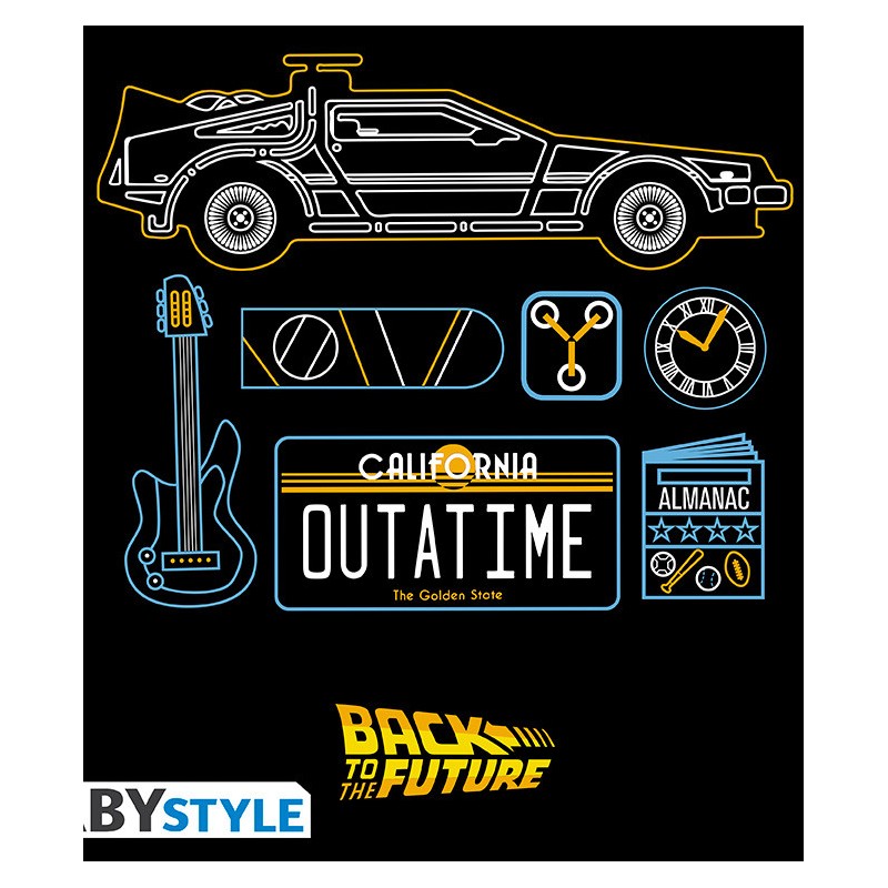 Entrez dans le futur avec style grâce à ce t-shirt noir Retour vers le Futur. Avec un design emblématique de la DeLorean sur le devant, ce vêtement capture l'essence de l'aventure temporelle. Il comprend des détails comme la plaque 'OUTATIME' et d'autres éléments emblématiques du film. Fabriqué en matériaux doux et confortables, il est idéal pour un usage quotidien ou pour compléter votre collection geek. Un cadeau parfait pour les fans de la série qui apprécieront son design soigné et sa licence officielle.