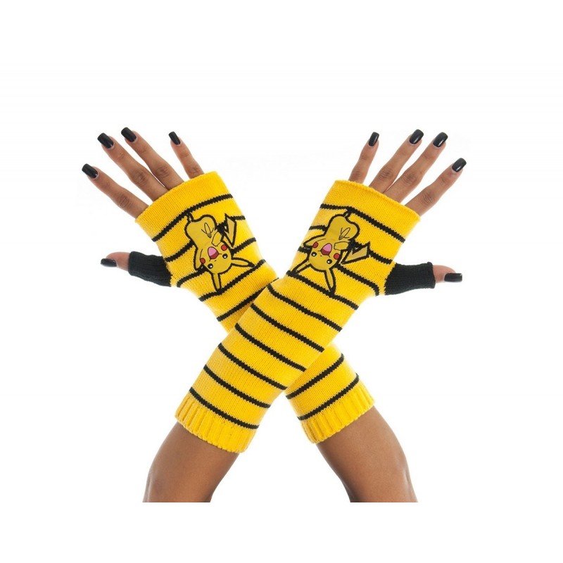 Mitaines pikachu point avec le gros orteil coupé aussi. Ils sont rayés de jaune et de noir et a un pikachu sur le dos de la main, parfait pour la formation des pokemons!