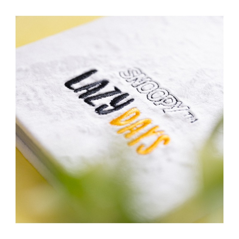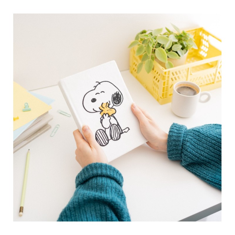 Ce charmant carnet A5 avec une couverture rigide offre une expérience d'écriture unique. La couverture est revêtue de polaire, lui donnant une texture douce et attrayante au toucher, et présente un design brodé de Snoopy étreignant Woodstock, ajoutant une touche nostalgique et attachante. Son intérieur est spécialement personnalisé avec des feuilles de 100 g/m2, idéales pour tout type d'écriture, que ce soit au stylo ou au crayon. Avec 96 feuilles (192 pages au total), il offre amplement d'espace pour vos notes et pensées.