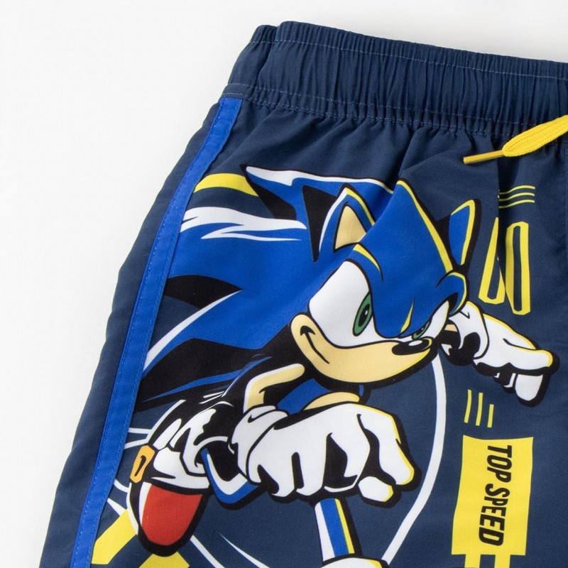 Découvrez le short de bain Sonic, idéal pour les jeunes fans du célèbre hérisson bleu. Fabriqué en 100% polyester, ce vêtement offre le confort et le style dont votre enfant a besoin pour profiter de l'eau. Avec un design bleu marine, il met en avant une image vibrante de Sonic en action, parfait pour les enfants de 5 à 12 ans. Comprend un cordon pratique jaune à la taille élastique pour un ajustement sécurisé.