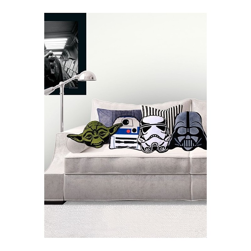 Un pack de quatre coussins avec les personnages cultes de l'univers de Star Wars: l'enseignant de la Baise, les attachants R2D2, le mal Darth Vader et l'un des redoutables les Stormtroopers de l'empire ou de Soldats.