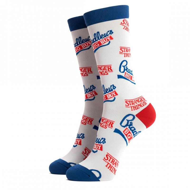 Plongez dans l'univers de Stranger Things avec ces chaussettes irrésistibles qui capturent l'essence de la série Netflix. Le design présente le logo 'Bradley's Big Buy' aux côtés de l'emblématique 'Stranger Things', combinant des couleurs vibrantes telles que le rouge, le blanc et le bleu. Fabriquées avec 86% de coton, 12% de polyamide et 2% d'élasthanne, elles offrent un confort et une durabilité exceptionnels.