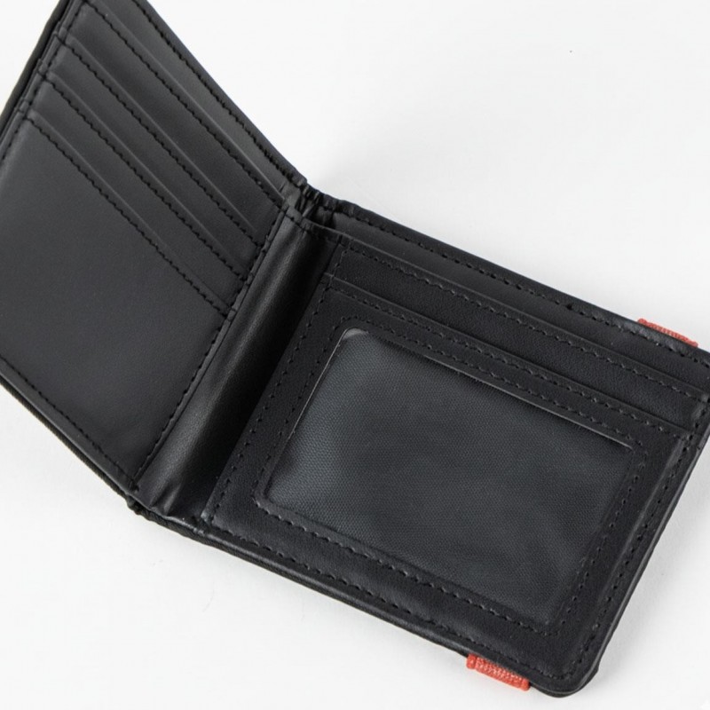 Il dispose de plusieurs compartiments pour cartes et d'une fenêtre transparente pour les documents, idéal pour garder vos affaires organisées et facilement accessibles. Sa fermeture avec bande élastique rouge assure que tout reste en place, offrant sécurité et confiance.