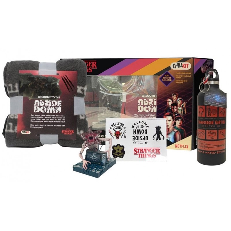 La figurine de collection représente le redoutable Demogorgon, pris en flagrant délit de terreur, idéale pour être exposée sur n'importe quelle étagère. Accompagnant cette figurine, vous trouverez une bouteille d'eau en acier inoxydable avec des graphismes thématiques, parfaite pour garder vos boissons à la bonne température pendant la chasse aux monstres. La couverture douce arbore le logo “Welcome to the Upside Down”, idéale pour vous garder au chaud pendant les marathons d'épisodes. De plus, il inclut une sélection de stickers célébrant différents éléments emblématiques du show.