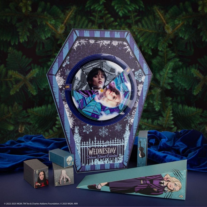 Découvrez le Calendrier de l'Avent Deluxe 2025 de Wednesday, une célébration quotidienne emplie de surprises et d'articles thématiques de votre série préférée. Avec un design unique en forme de cercueil, ce calendrier capture l'essence mystérieuse et charmante de Wednesday, idéal pour les vrais fans.