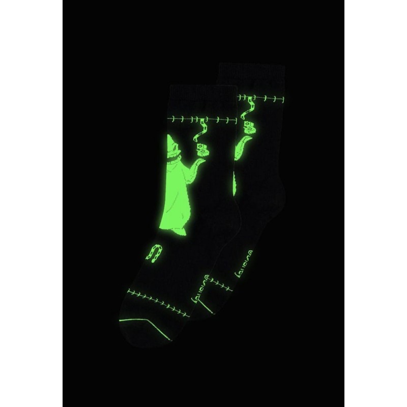 Découvrez le pack de 2 paires de chaussettes inspiré par le film iconique L'Étrange Noël de monsieur Jack. Cet ensemble sous licence officielle est parfait pour tout fan de l'univers de Tim Burton. Fabriquées avec 75% de coton, elles offrent une douceur et un confort exceptionnels, complétés par la durabilité de 23% de polyester et l'élasticité de 2% d'élasthanne. Chaque paire présente des designs uniques : une avec le terrifiant Oogie Boogie qui brille dans le noir et l'autre avec l'élégant Jack Skellington en rayures noires et blanches. Disponibles en taille EU 35-38, ces chaussettes Difuzed sont un ajout essentiel pour les cinéphiles et un cadeau unique pour toute occasion. Ajoutez une touche de mystère et de style à vos pieds !