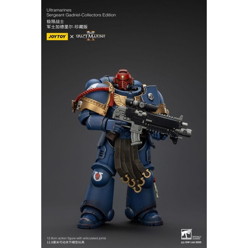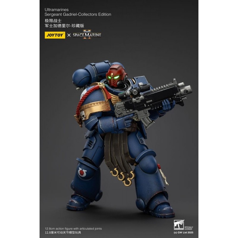 Découvrez l'impressionnante figurine articulée du Sergent Gadriel des Ultramarines, faisant partie de la collection Warhammer 40,000. Mesurant environ 13 cm, cette figurine est indispensable pour les fans de l'univers Warhammer. Fabriquée par Joy Toy, une marque reconnue pour ses produits de haute qualité, cette figurine se distingue par des détails méticuleusement conçus et un armement impressionnant.