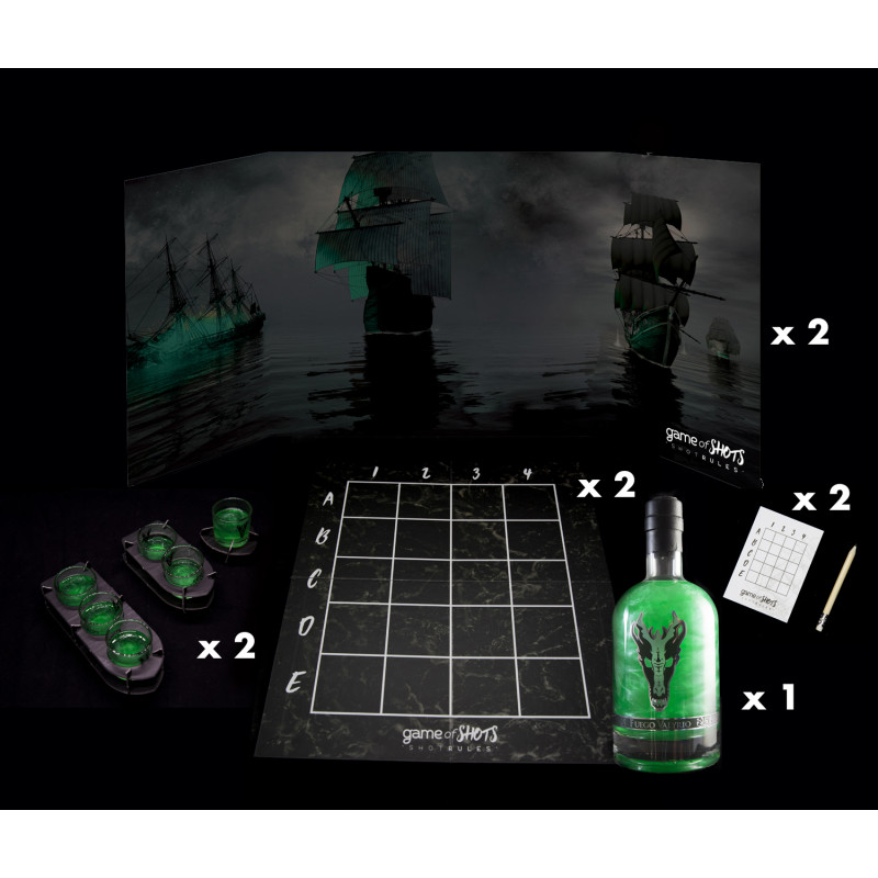 Se trata del juego de hundir la flota de toda la vida, pero en este caso cada barco lleva un cargamento de Fuego Valyrio que no tendrás más remedio que beberte si tus oponentes te hunden el barco. Es un juego ideal para jugar con varios amigos y el único en el que estarás deseando perder. Este juego viene en un completo pack con un envase de lo más elegante, que incluye una botella de Fuego Valyrio, 12 vasos de chupito oficiales de esta bebida, 6 barcos, 2 tableros, 2 lápices y 2 blocs de notas.