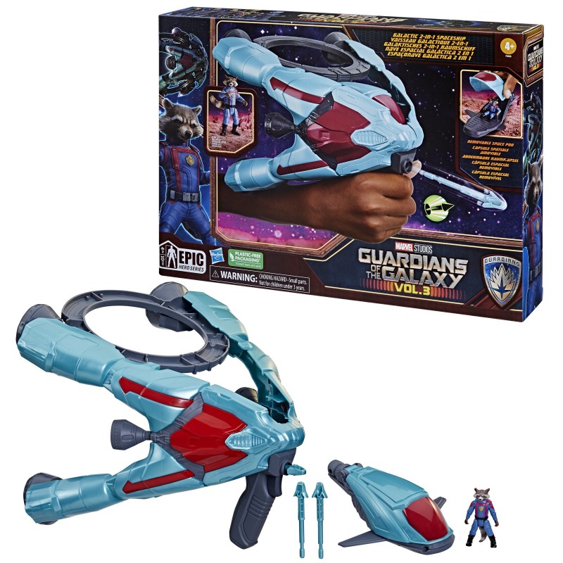 Libere sua imaginação com a Nave Espacial Galáctica da Hasbro, inspirada nos Guardiões da Galáxia da Marvel! Este conjunto apresenta uma deslumbrante nave azul e vermelha, perfeita para recriar aventuras cósmicas. A nave inclui uma cápsula espacial removível e uma figura de 5,5 cm do Rocket, o querido herói da Marvel. Ideal para crianças a partir de 4 anos, esta nave vem equipada com 3 projéteis para emocionantes batalhas espaciais.