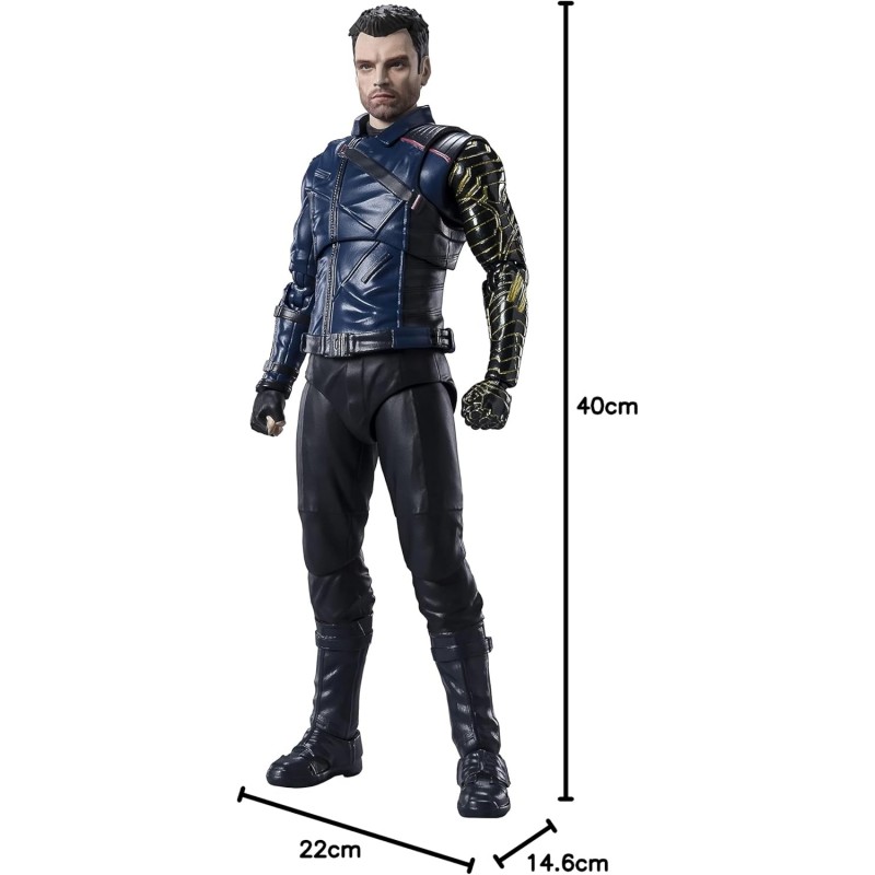 A figura Tamashii Nations Bucky Barnes da linha S.H. Figuarts captura perfeitamente o icônico personagem conhecido como Winter Soldier, conforme visto na minissérie da Disney+ 'Falcon and the Winter Soldier'. Feita em PVC de alta qualidade, esta figura articulada permite recriar uma variedade de poses dinâmicas com excelente flexibilidade.