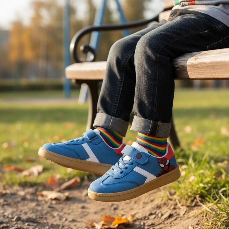 Descubra esses incríveis tênis esportivos do Homem-Aranha para crianças, projetados para combinar estilo e conforto. Feitos de uma mistura de PU, poliéster e PVC, esses tênis oferecem grande durabilidade e resistência. A parte superior em azul destaca-se com o design icônico do Homem-Aranha, enquanto os detalhes em vermelho e branco dão um toque moderno e atraente.
